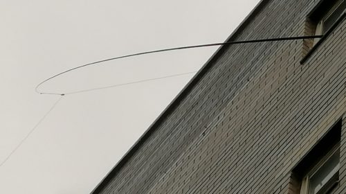 Po príchode do NYC sme si doplnili itinerár na voľné dni, podľa predpovedi počasia. Bola to síce moja cesta, ale organizáciu som nechal pochopiteľne na syna. Najprv som si odskúšal, či sa dá vysielať v skromných podmienkach z hotela, keďže som nechcel dráždiť personál s nejakými pre nich možno nepochopiteľnými otázkami. Bývali sme v malom, aj keď nie najlacnejšom hoteli v štvrti Manhattan, kúsok od úplného centra, na rušnej 11. Avenue. To mi však nebránilo vysunúť z okienka kúpeľne na 5. poschodí 5 m rybársky bič, cez neho spustiť drôt zaťažený na konci oloveným rybárskym závažím, čo vytvorilo anténu v tvare písmena L. Koniec mi vyšiel asi 3 m nad chodníkom, takže si to večer ani nikto nevšimol, foto som robil ešte za svetla. Aj napriek týmto divným podmienkam a priestorovej konštelácii a obrovskému rušeniu som urobil 9 spojení. Z toho dve spojenia s Európou, SM3NXS a EA6NB, čo bolo s 5 W slušný výkon.
